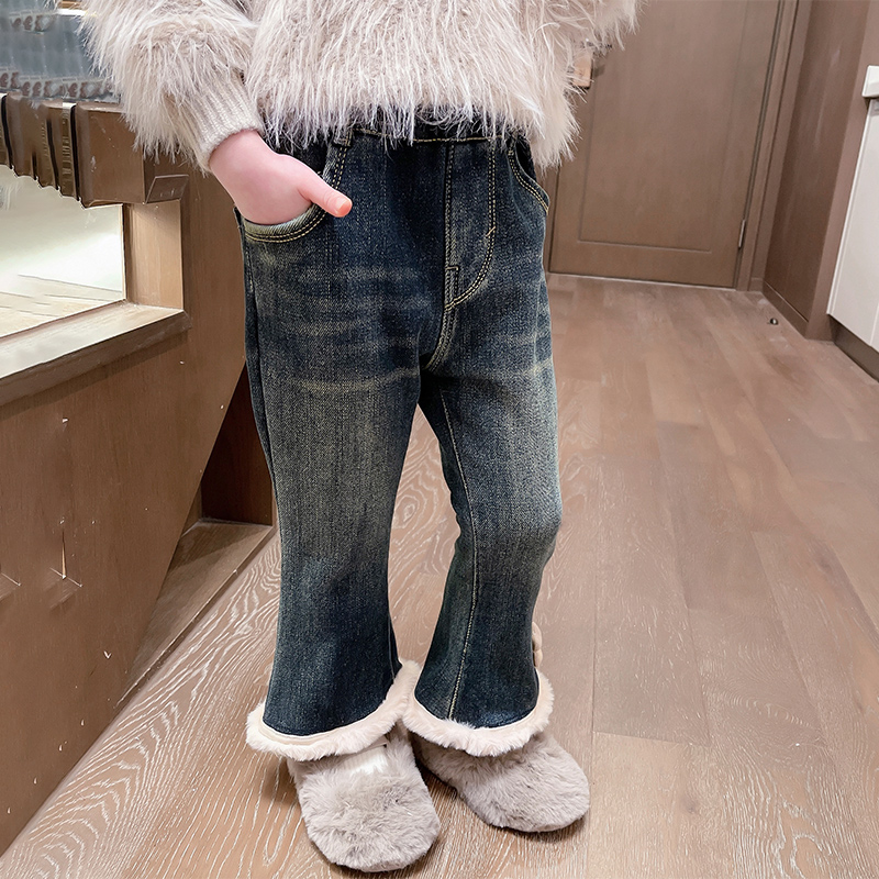 女童喇叭裤牛仔裤2025新款爱心女宝宝秋冬款加绒加厚儿童冬季裤子