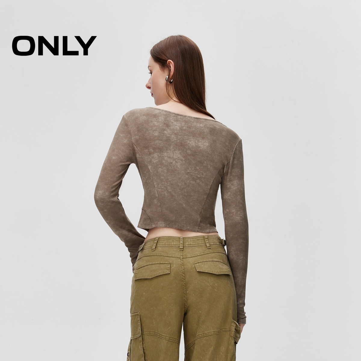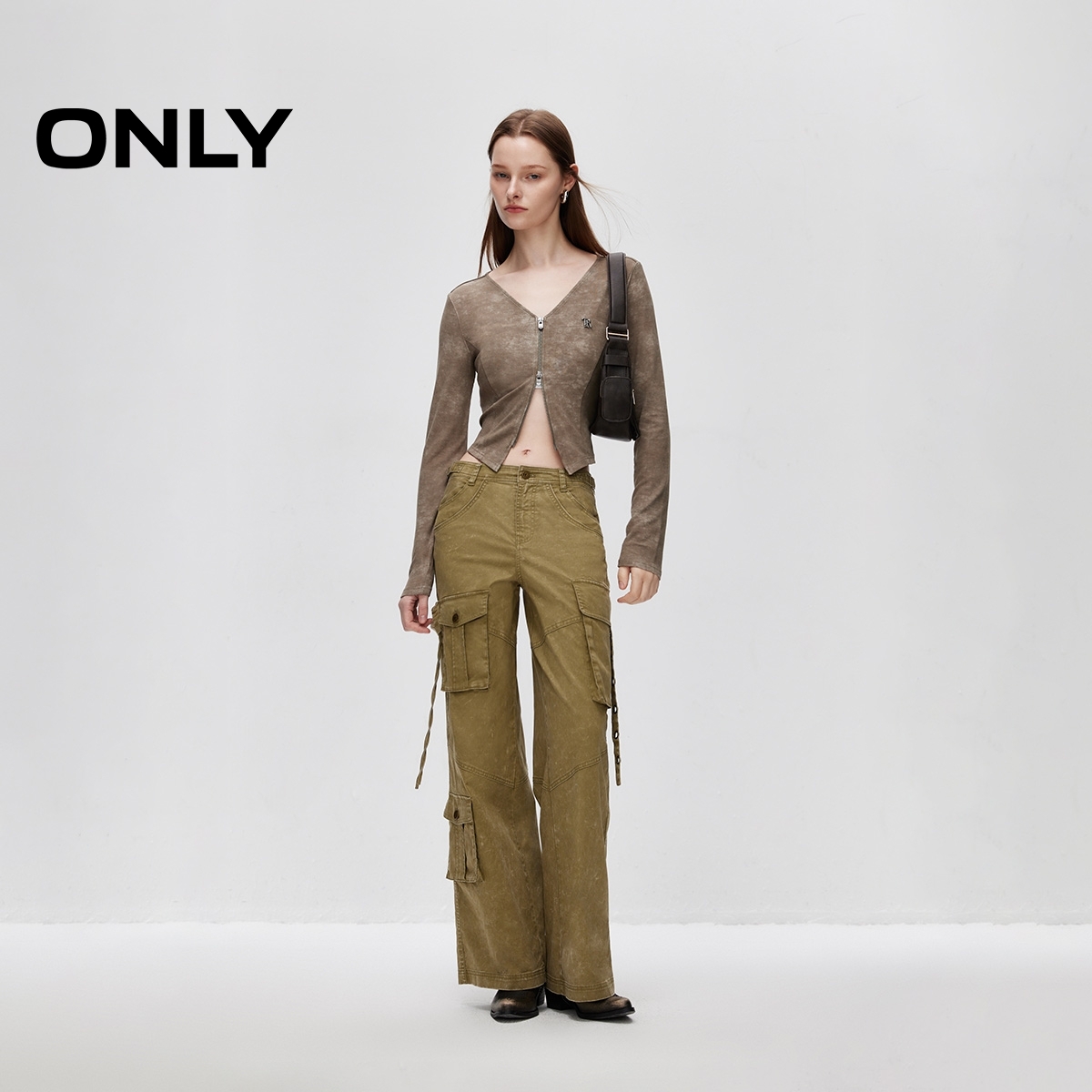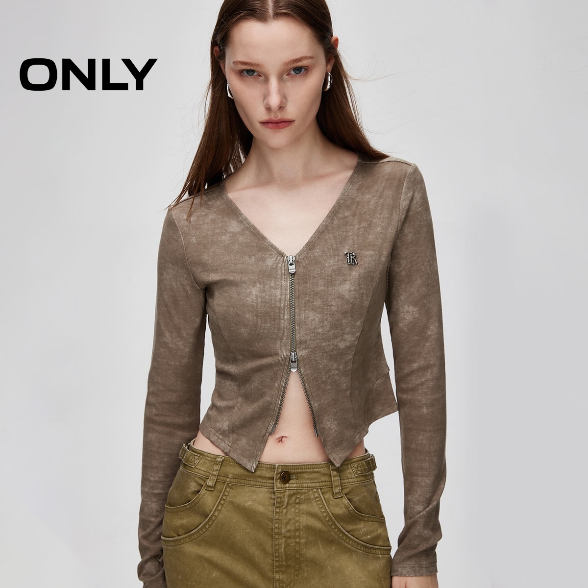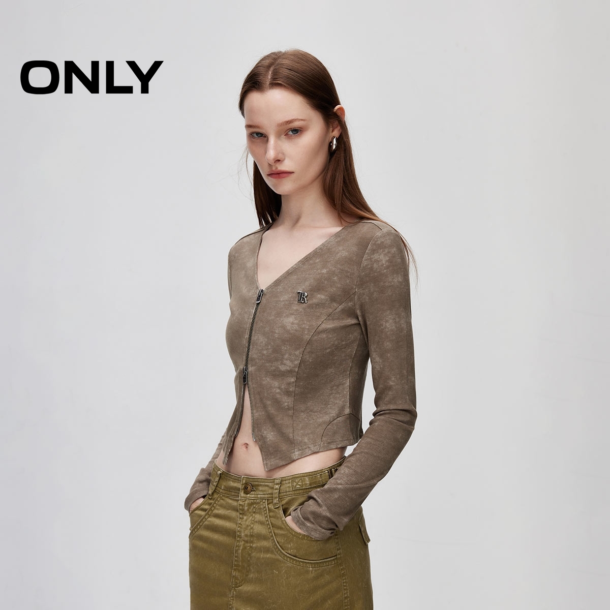 【ONLY奥莱】秋季潮酷修身显瘦V领开衫长袖短款T恤女