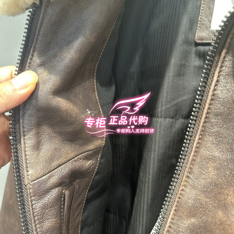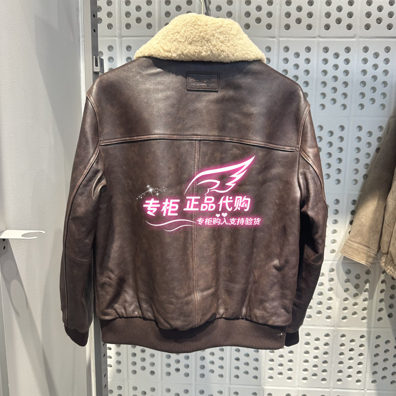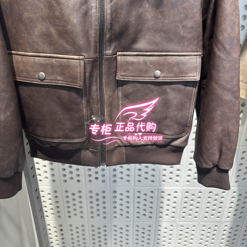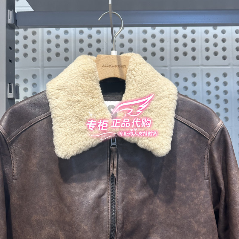 杰克琼斯男装新款皮衣美式复古可拆卸毛领夹克外套 225428003