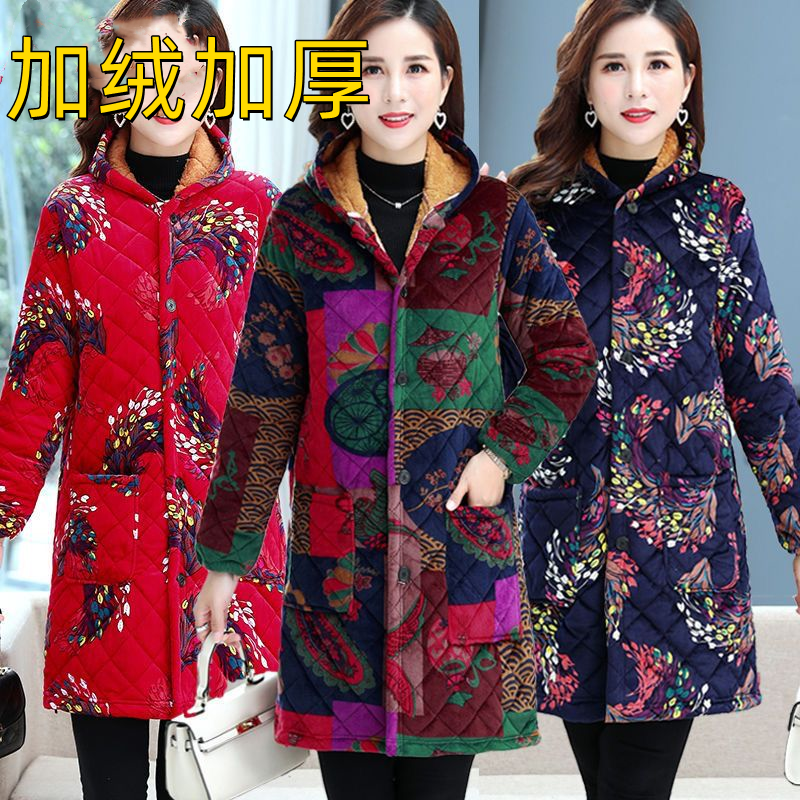 加绒加厚冬季女装保暖防寒工作服罩衣棉衣外套中长款宽松大码棉服