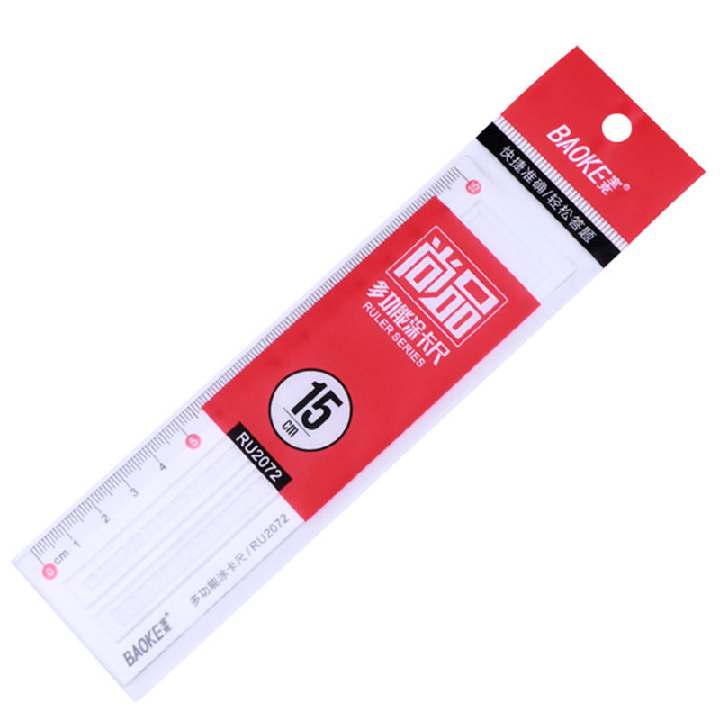 宝克文具RU2073学生用套尺塑料15cm直尺三角尺量角器尺子画图套装儿童四件套可爱卡通4件套RU2071