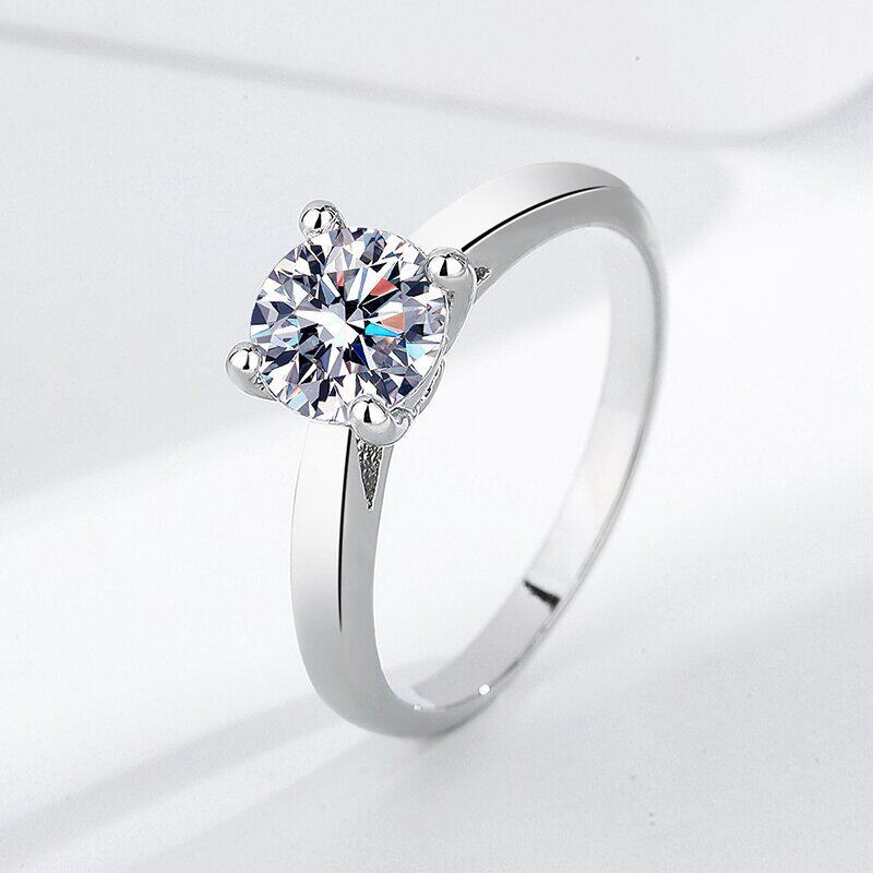 S925镀纯银韩版简约甜美硞石镶钻戒指几何形小清新求婚结婚戒指