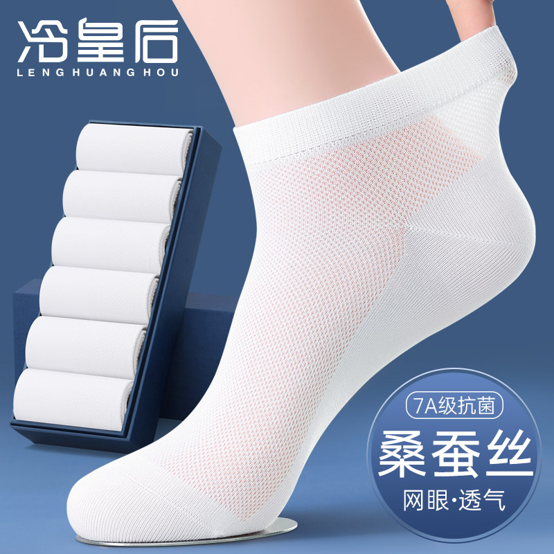 桑蚕丝袜子男士短袜夏季薄款防臭吸汗透气中筒白色网眼袜冰丝男袜