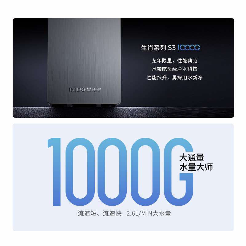 易开得国补净水器家用刘涛代言S3 1000G通量ro反渗透直饮净水机