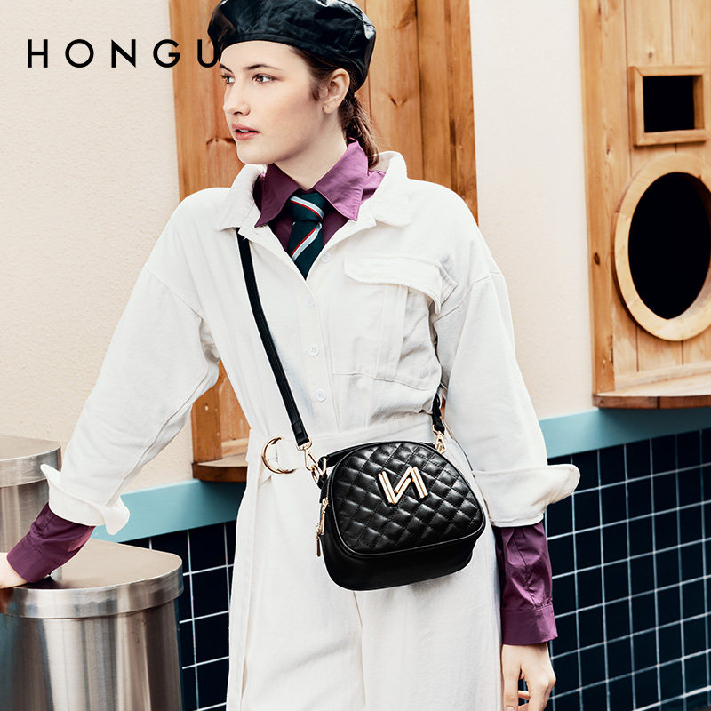 红谷包包女小猪包牛皮单肩手提包菱格斜挎女包时尚气质手拎包女