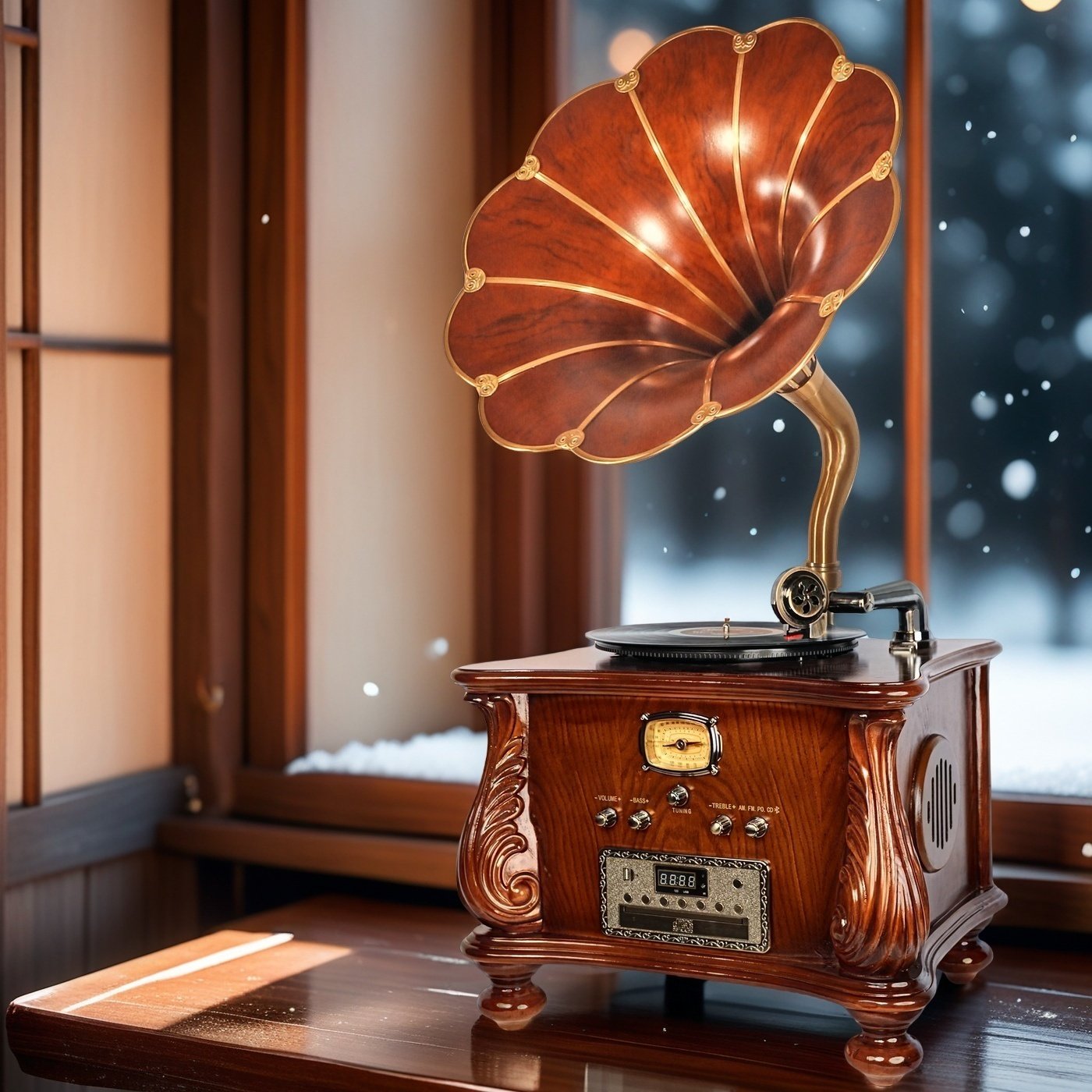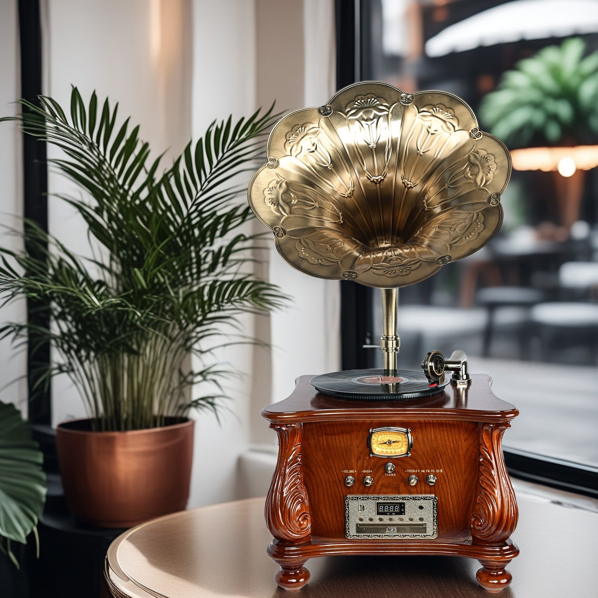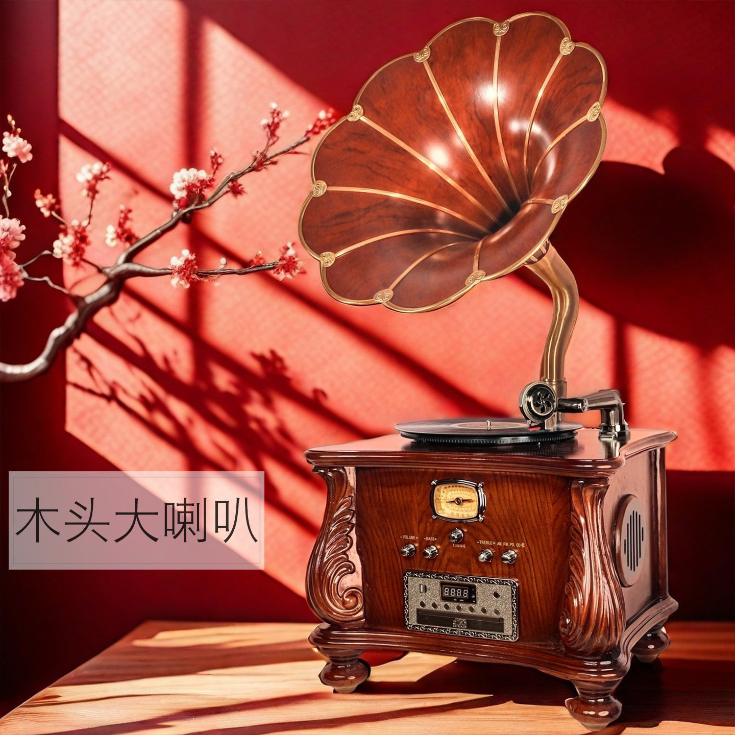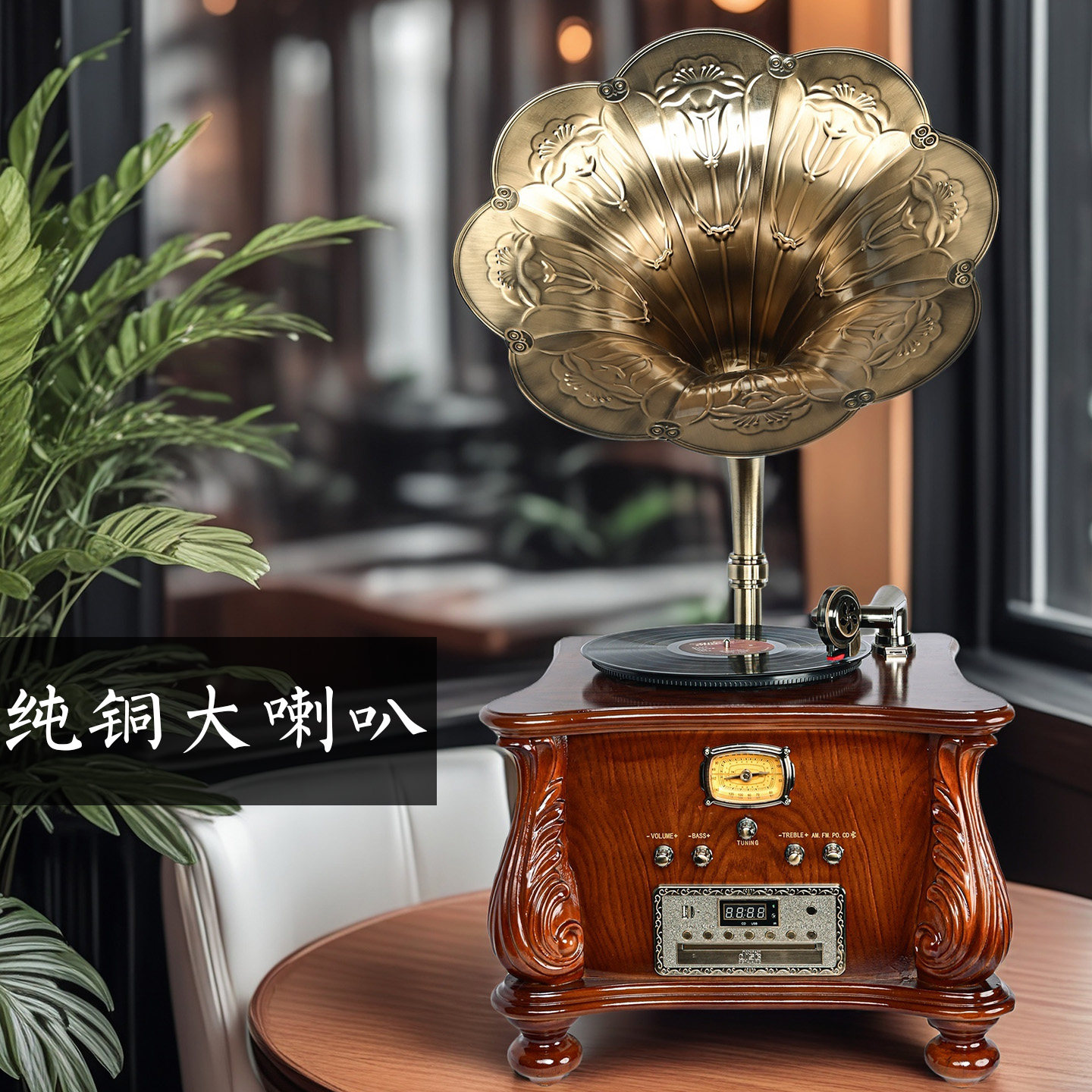 留声机老式复古客厅欧式黑胶唱片机复古大喇叭电唱机音响