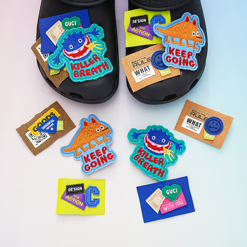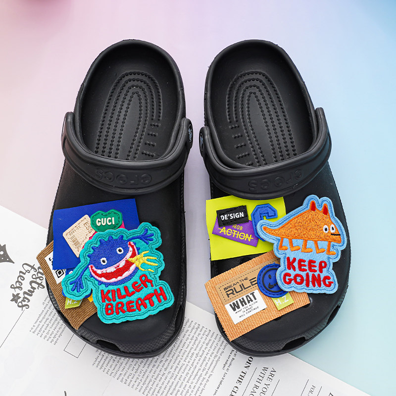 原创洞洞鞋扣布艺小怪兽