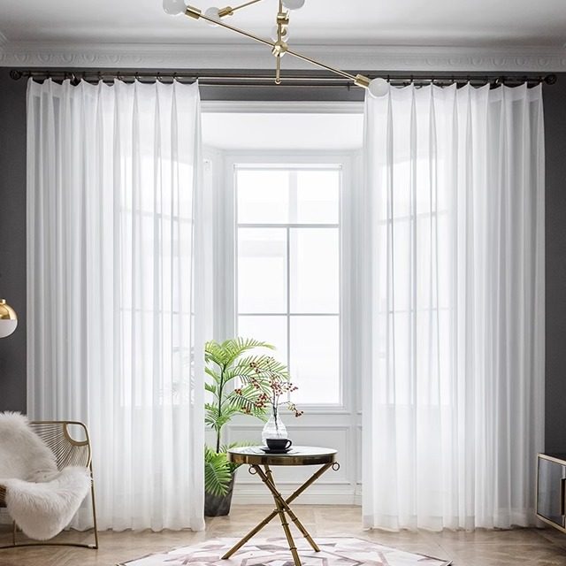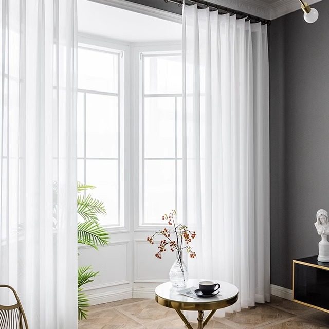 定制韩式轻奢简约金刚白纱客厅落地窗飘窗儿童房餐厅飘逸成品窗帘