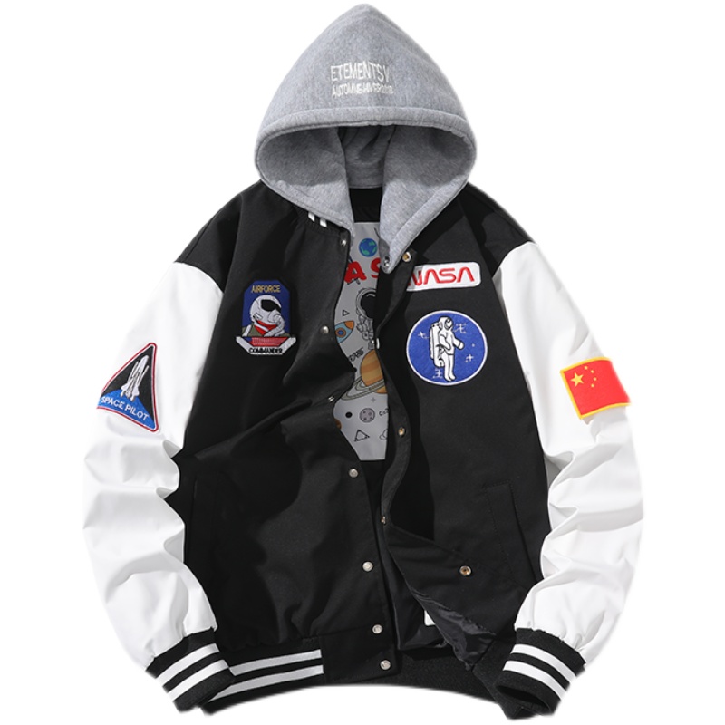 秋冬季NASA联名宇航员外套男女情侣宽松飞行员夹克夹棉加厚棒球服