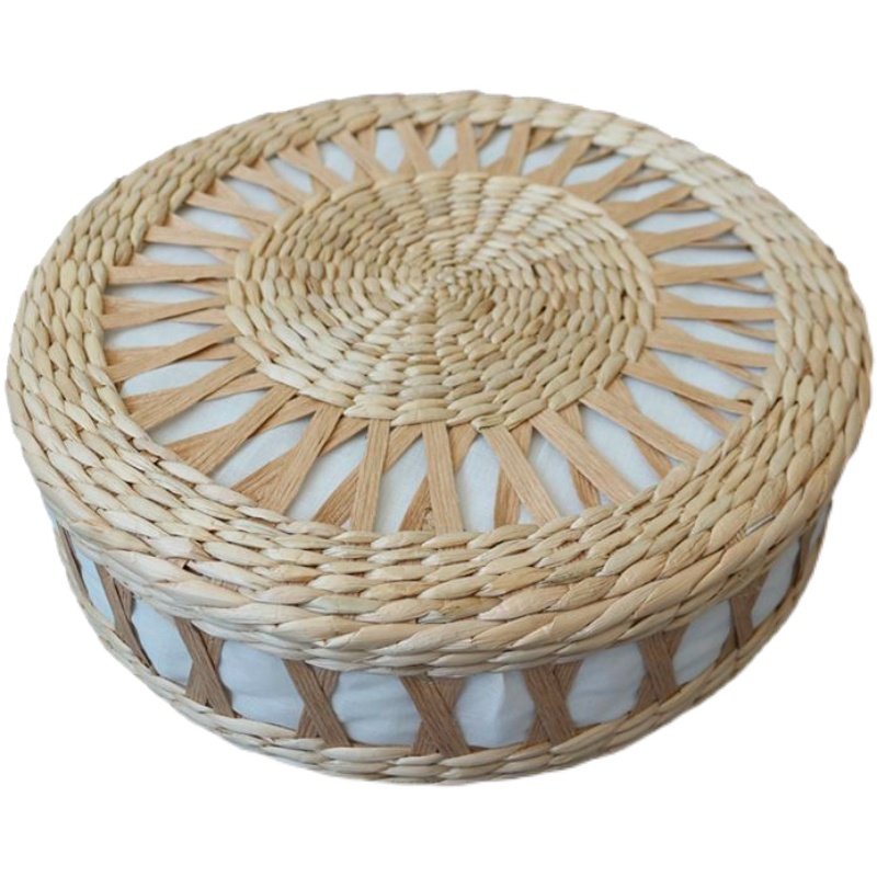 露营手工编织坐垫日式榻榻米飘窗圆形蒲团草编打坐垫民宿藤编座垫
