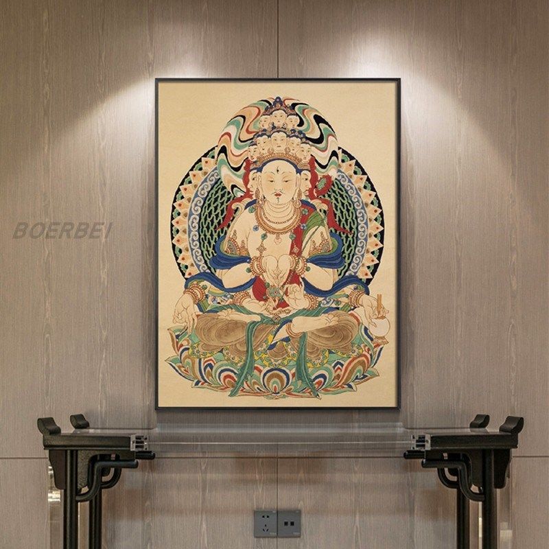速发禅意复古人像挂观画音菩萨装饰画中式古典佛物敦煌壁画茶室背