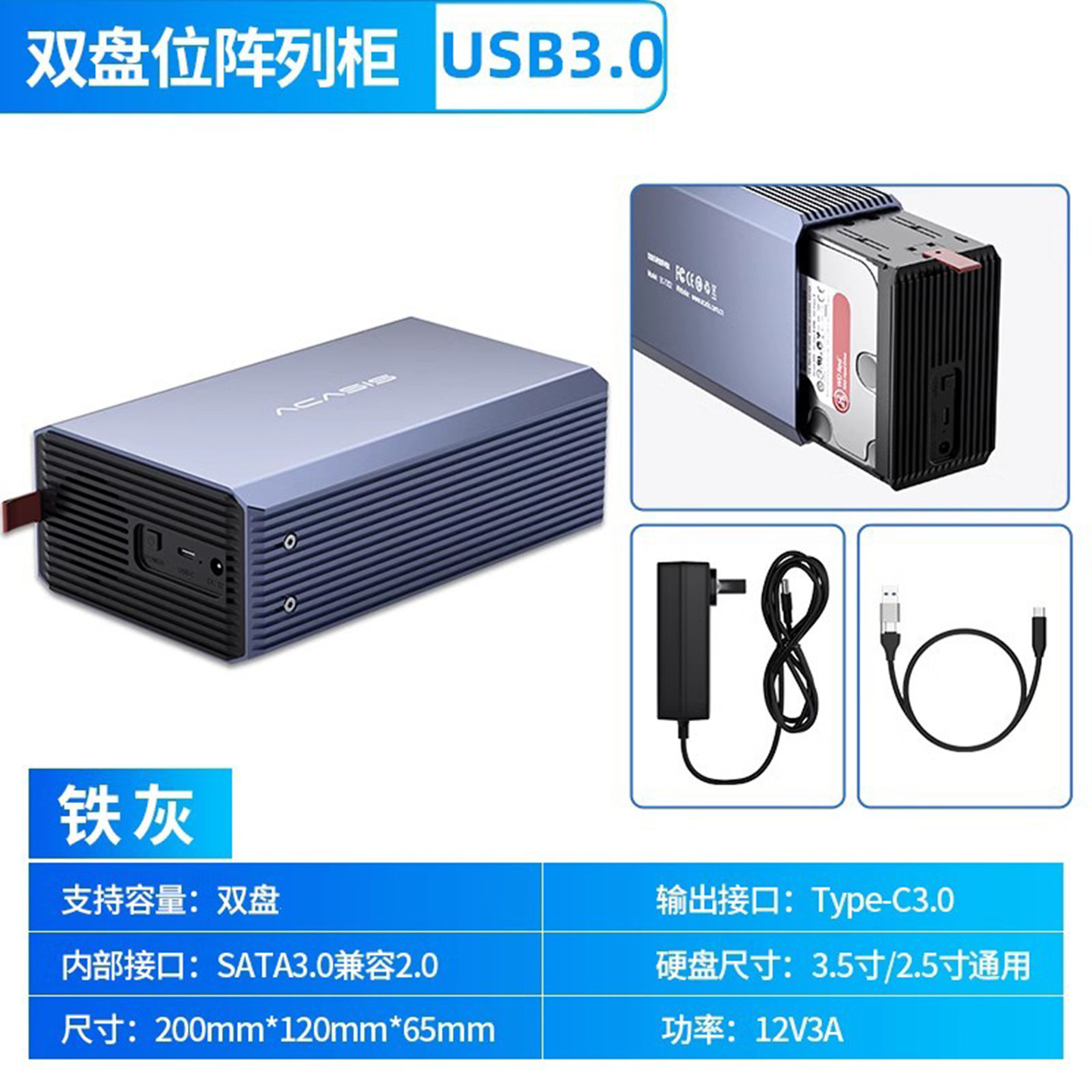 阿卡西斯双盘位硬盘盒磁盘陈列
