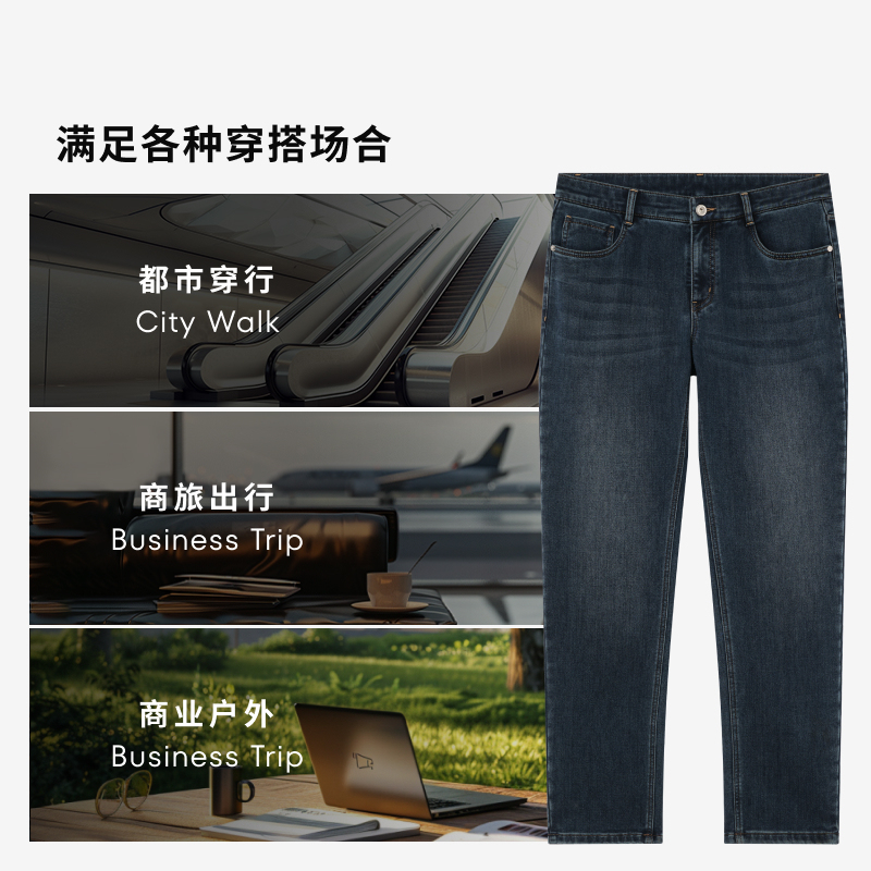 劲霸男装男士长裤子秋冬时尚保暖水洗内里绒感牛仔裤│NQRN3685