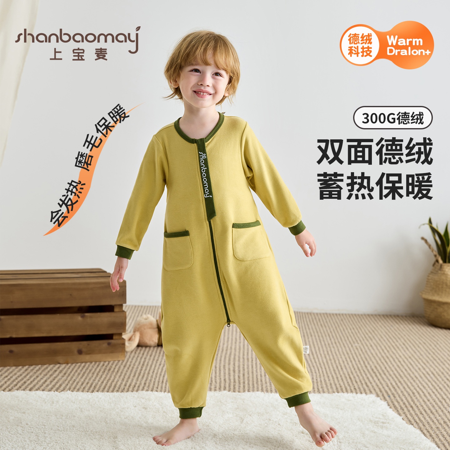 上宝麦2025新款秋冬儿童连体睡衣德绒家居服男女童长袖护肚保暖