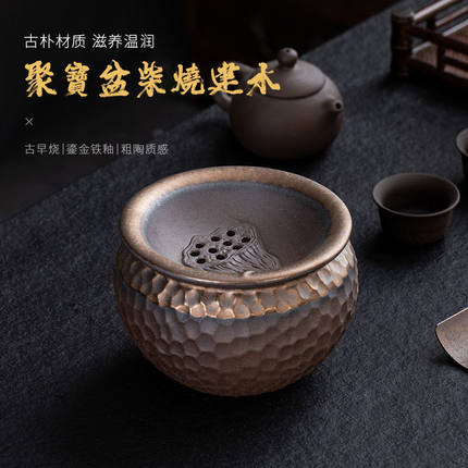 复古粗陶水盂建水茶洗桌面茶渣缸废水垃圾桶大号带盖过滤干湿分离