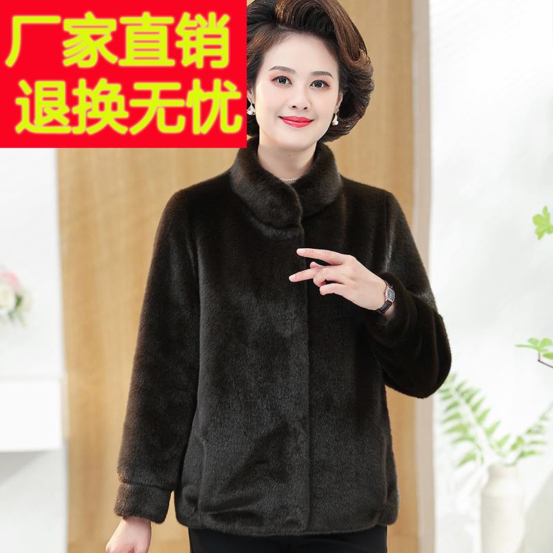 妈妈貂毛外套女秋冬短款时尚水貂绒中年女士加厚皮草大衣宽松大码