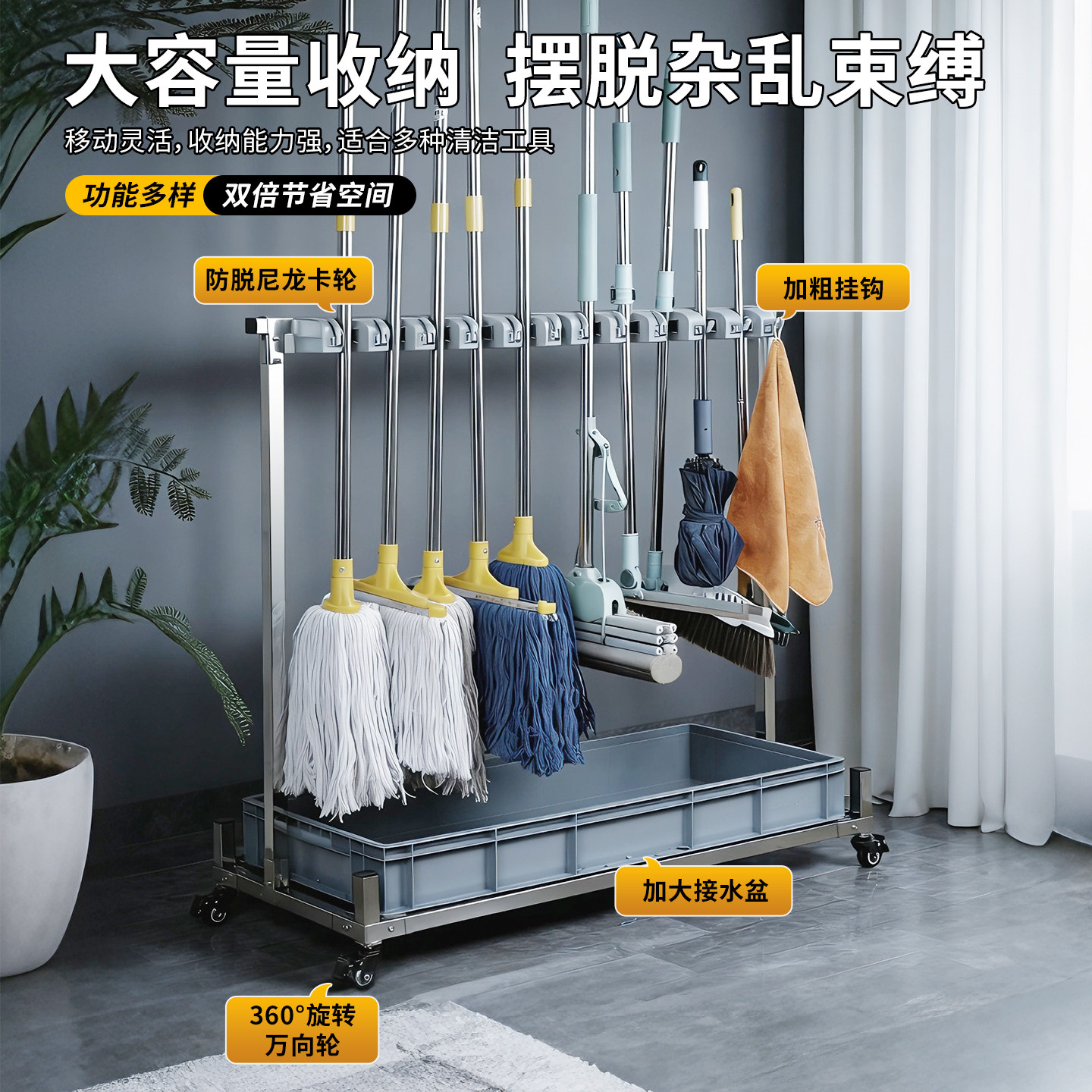 移动拖把架子落地式扫把收纳整理架保洁清洁卫生工具置物架教室