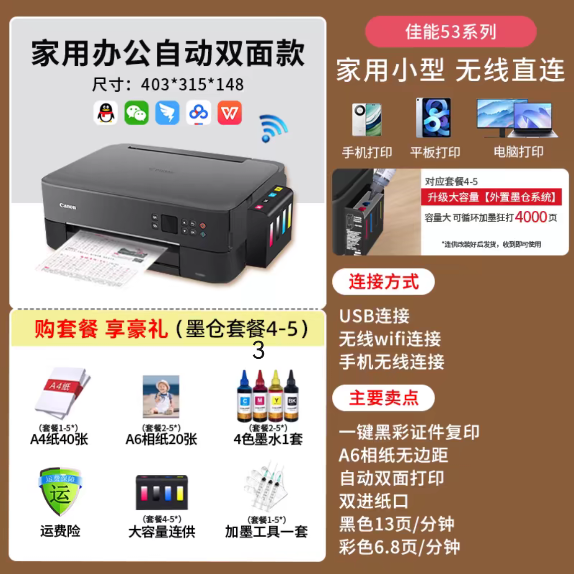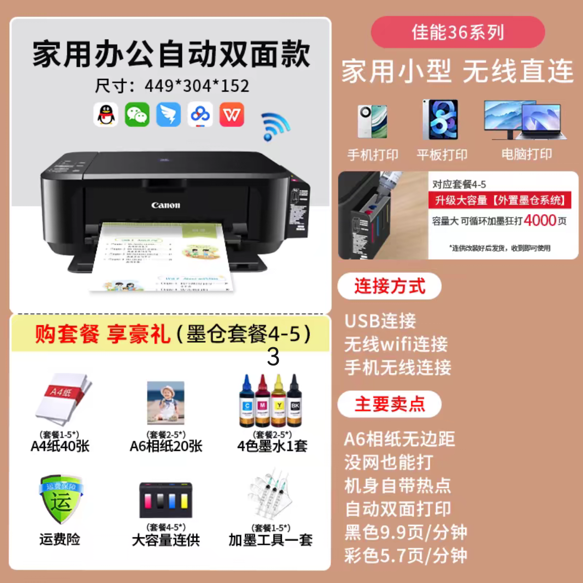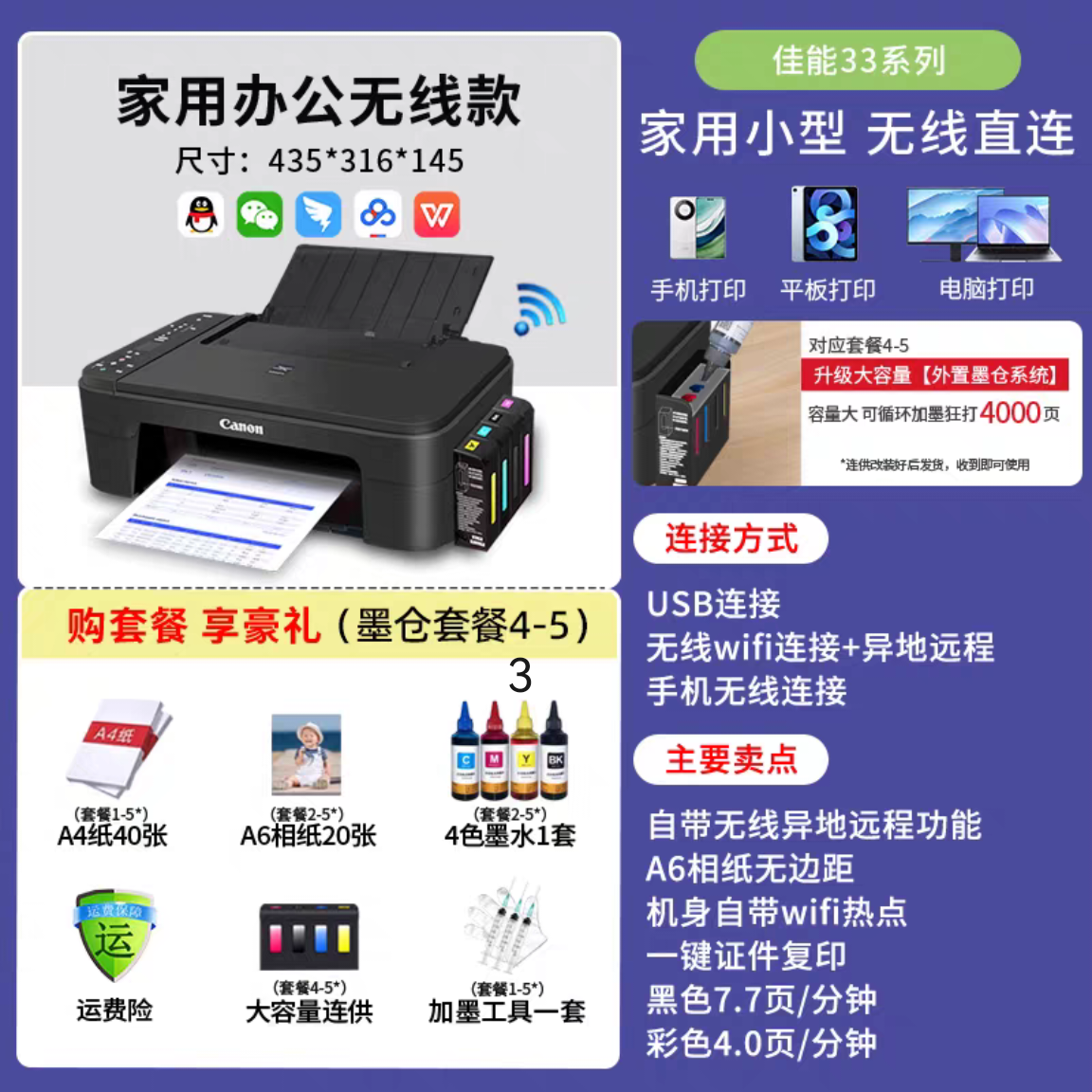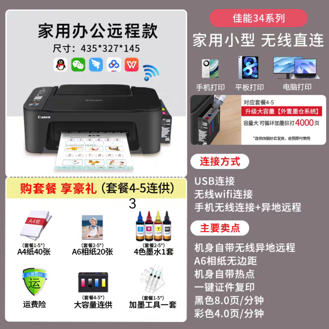佳能打印机复印扫描一体机家用小型学生照片无线办公3380连供墨仓