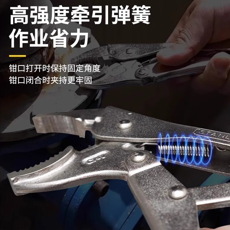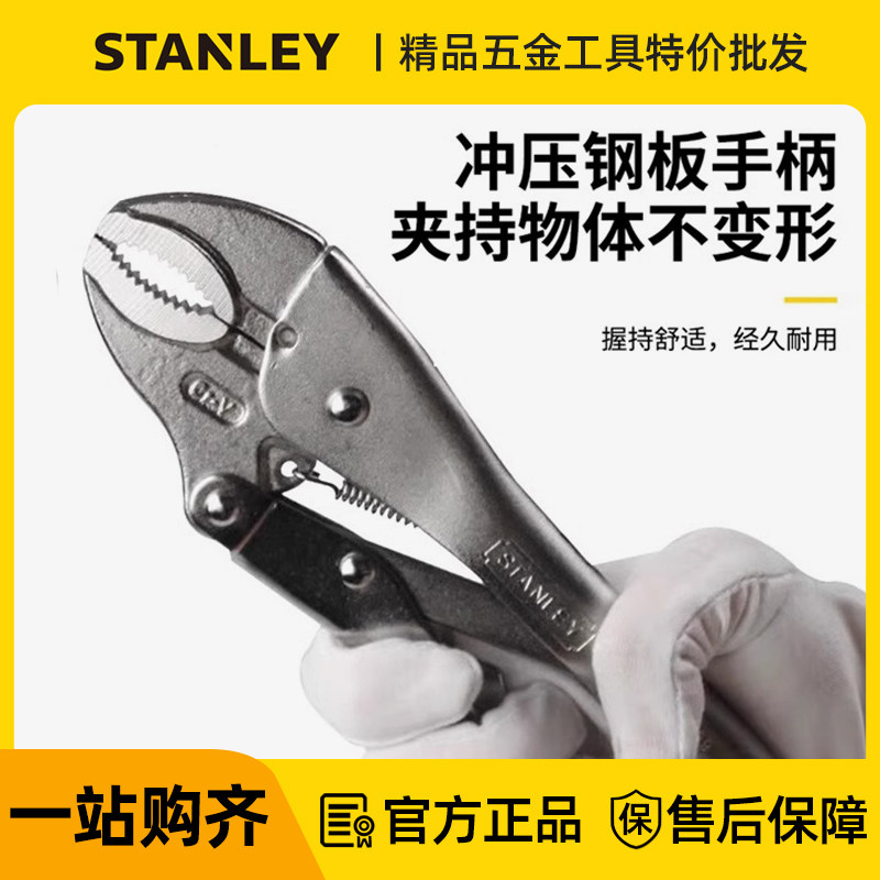 史丹利弧齿大力钳五金工具夹管钳夹持钳子固定钳圆口尖嘴C型夹钳