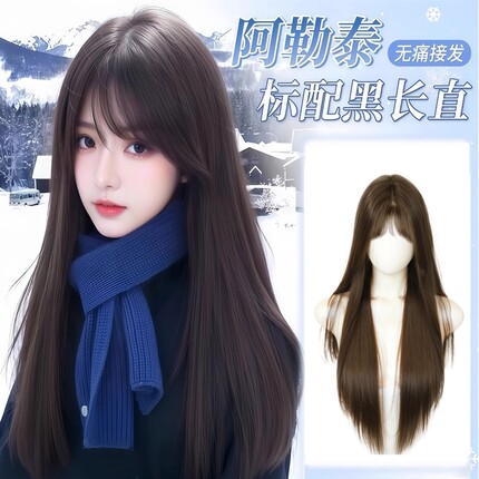不用戴发网的假发女片头顶无痕量日常整顶黑长直头套中分发丝长发