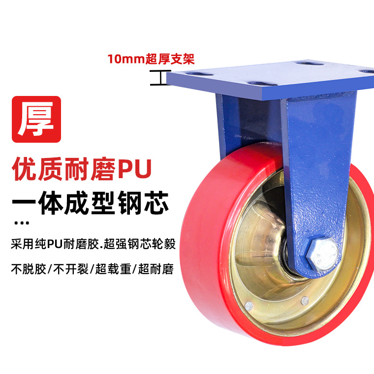 超重型金色钢芯PU聚氨酯轮4寸5寸6寸8寸万向轮承重1.2吨推车车轮