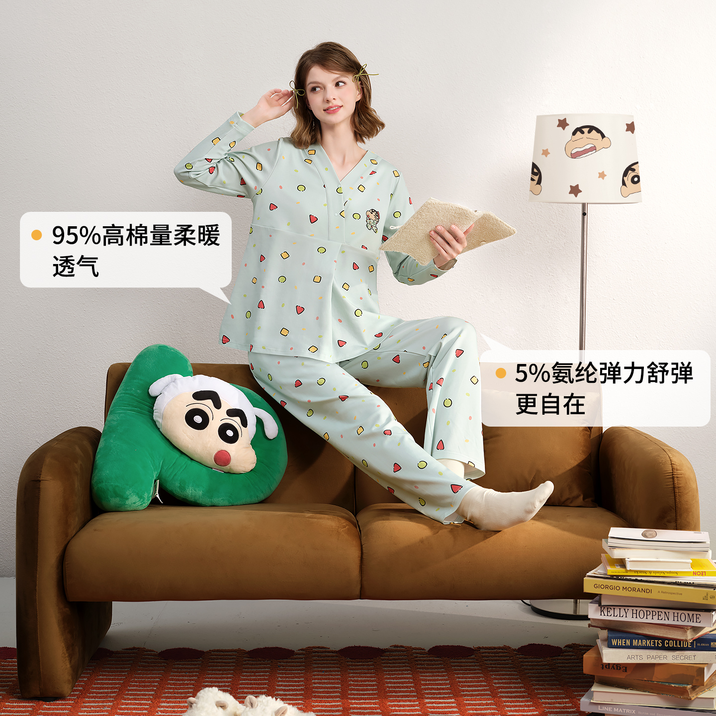 雅特茂&蜡笔小新联名月子服秋冬产后孕妇产妇哺乳睡衣孕期家居服