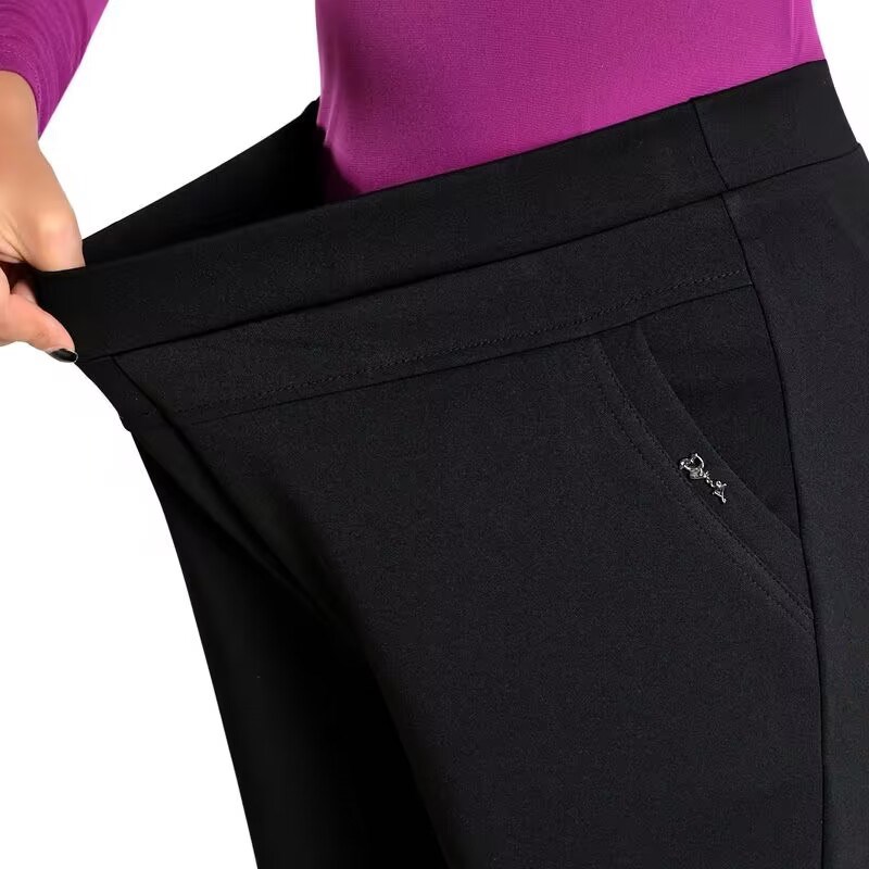 夏薄款老人裤子女中老年女裤妈妈长裤春秋大码松紧高腰弹力直筒裤