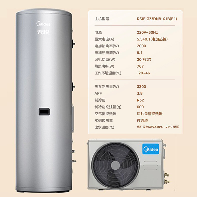 美的空气能热水器天悦X1一级能效空气源热泵电辅速热恒温200升