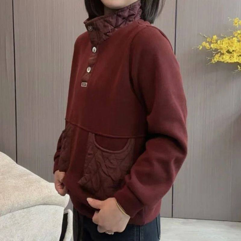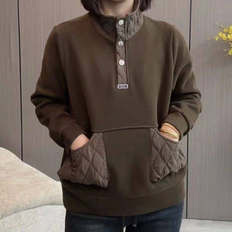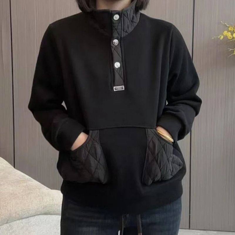2025秋冬新款时尚百搭宽松显瘦立领加绒加厚保暖卫衣女休闲上衣潮