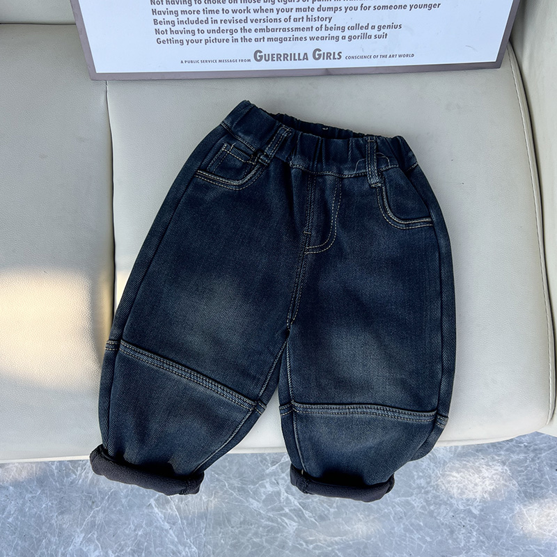 男童加绒牛仔裤子儿童韩版冬装中小童新款宝宝冬季休闲一体绒长裤