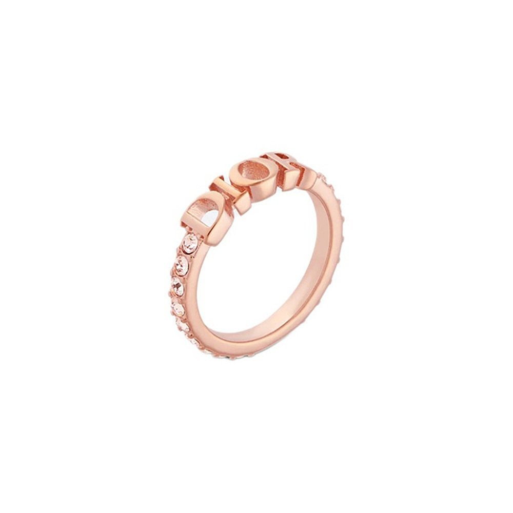 自营1h可退 欧洲直邮Dior迪奥女士水晶戒指粉色金属配粉色镂空log