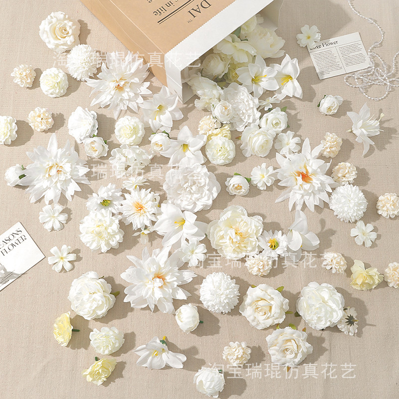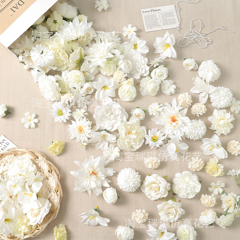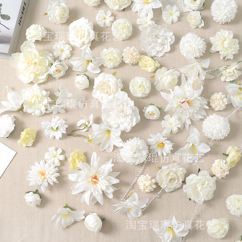 白色系系混搭仿真花朵假花绢花diy手作簪花头饰学士帽花环材料包