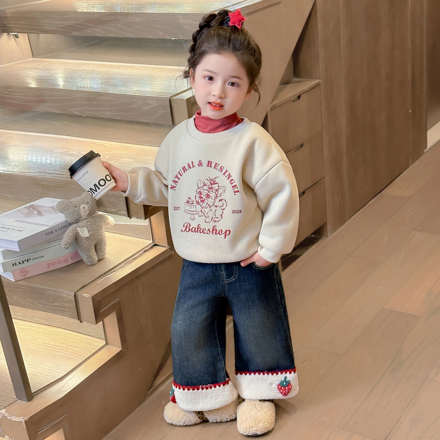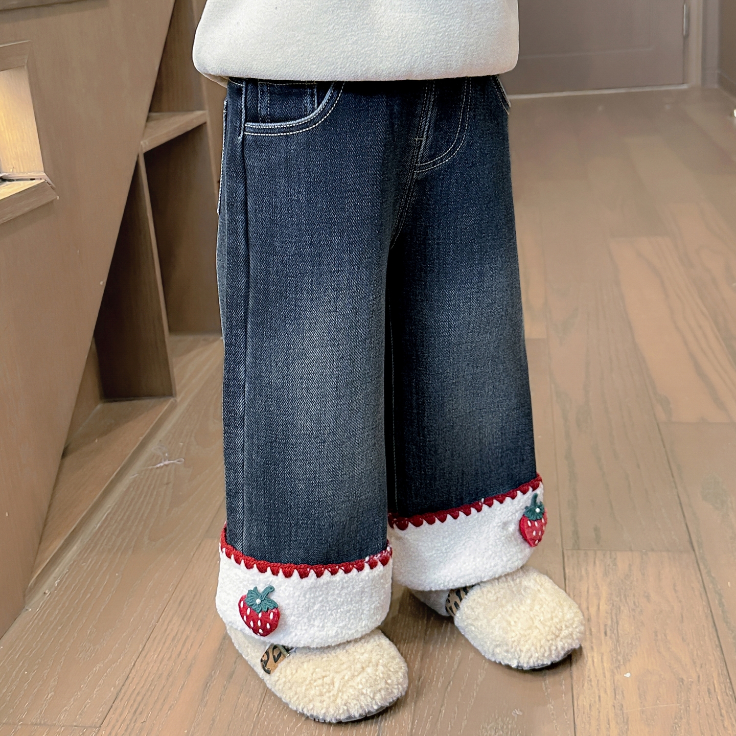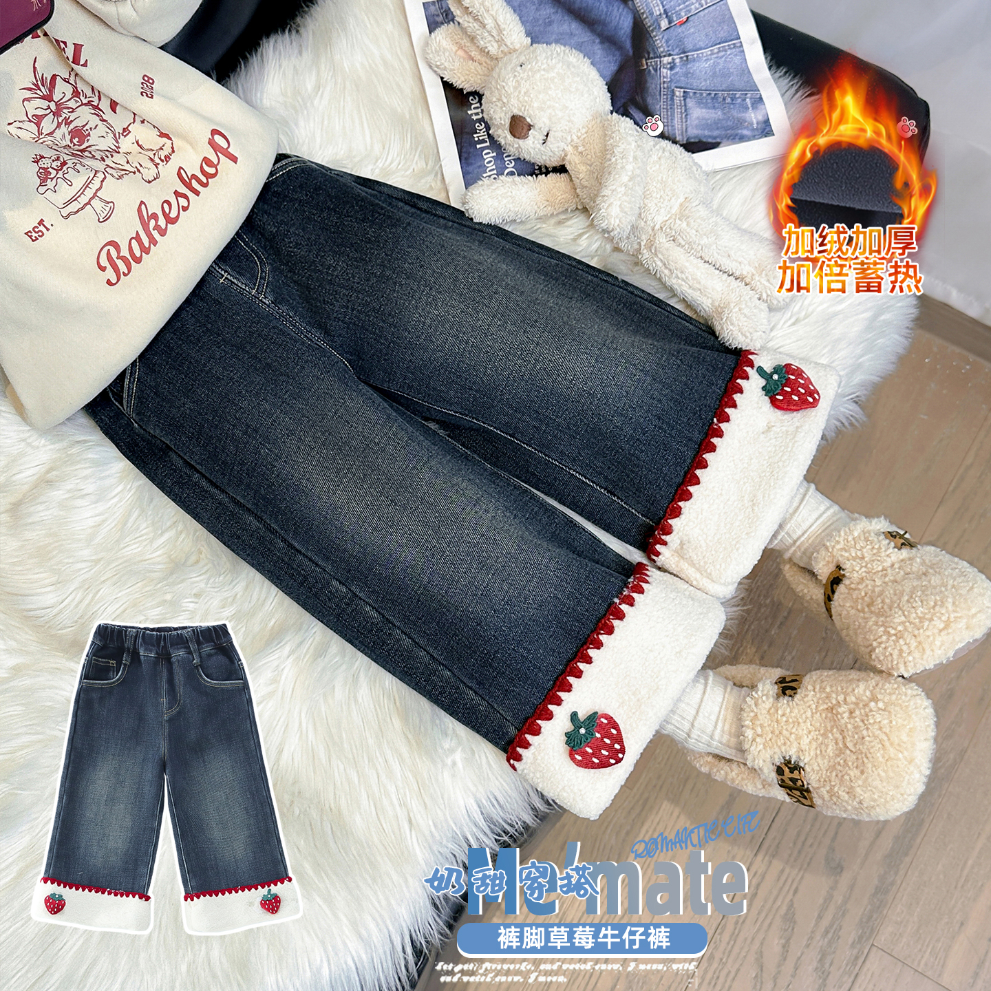 女童加绒牛仔裤2025新款儿童秋冬季一体绒裤子宝宝冬装加厚直筒裤