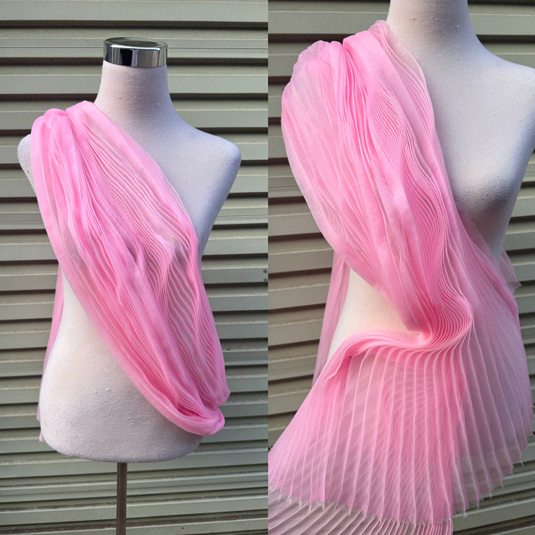 百褶布料高密度芭蕾舞裙面料欧根纱压褶风琴褶透明设计师褶皱面料