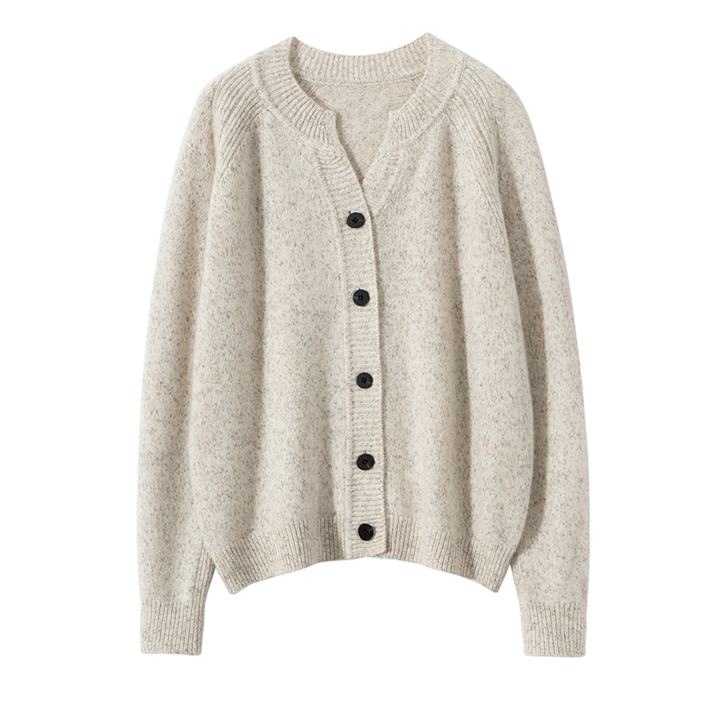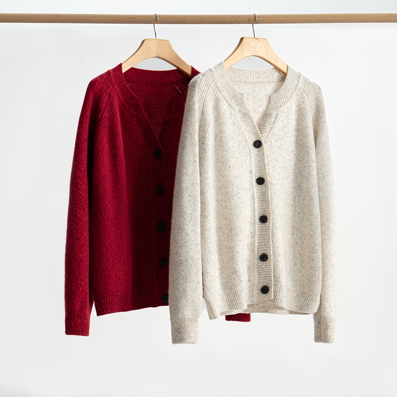 25秋冬新款100%山羊绒开衫女圆V领加厚纯色宽松毛衣外套针织上衣