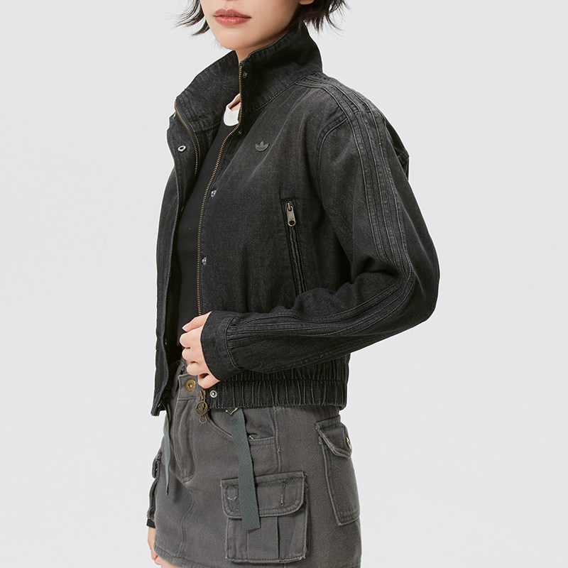 阿迪达斯三叶草外套女装2026春季新款运动服女士短款立领牛仔夹克