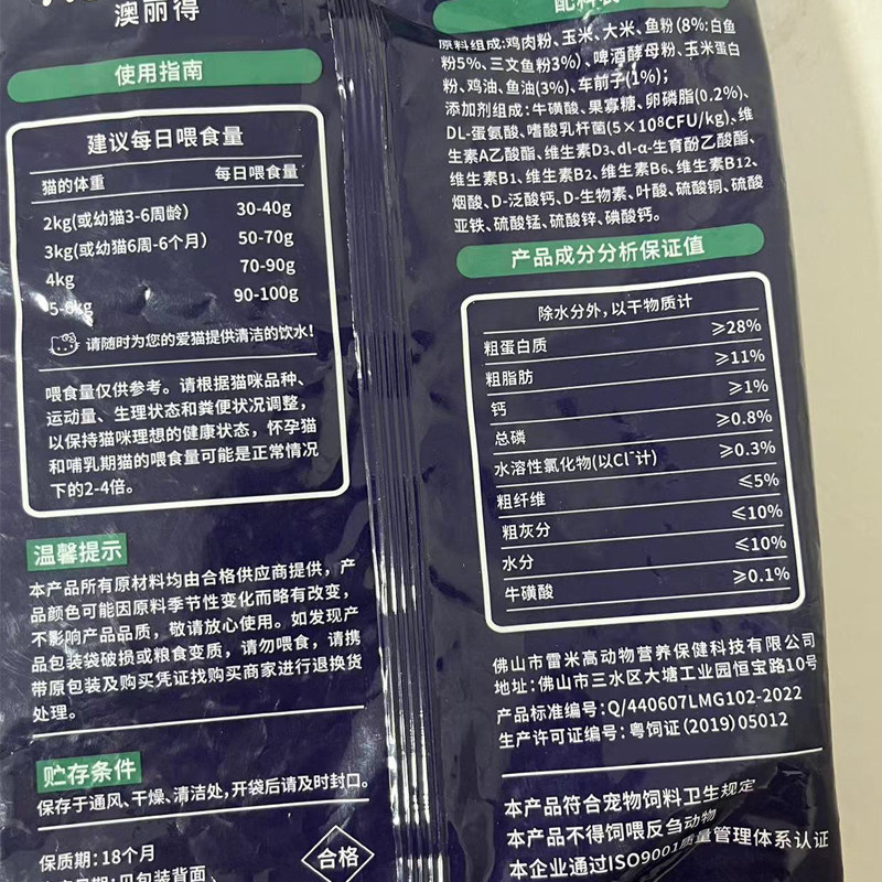 雷米高全价全阶段澳丽得营养幼猫粮500g海洋鱼味5斤成猫增肥粮食