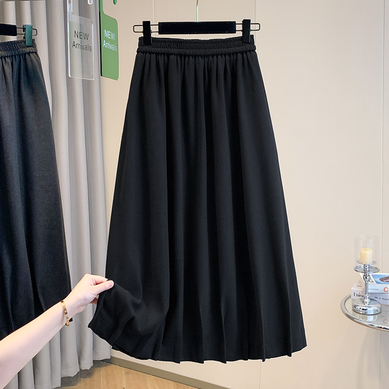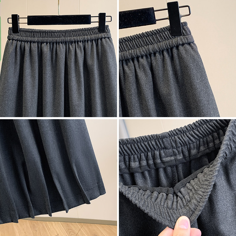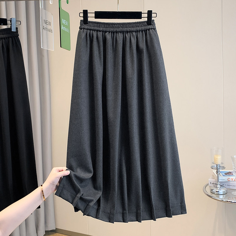 加大码简约褶皱边毛呢半身裙女2025秋冬新款通勤风宽松显瘦A字裙