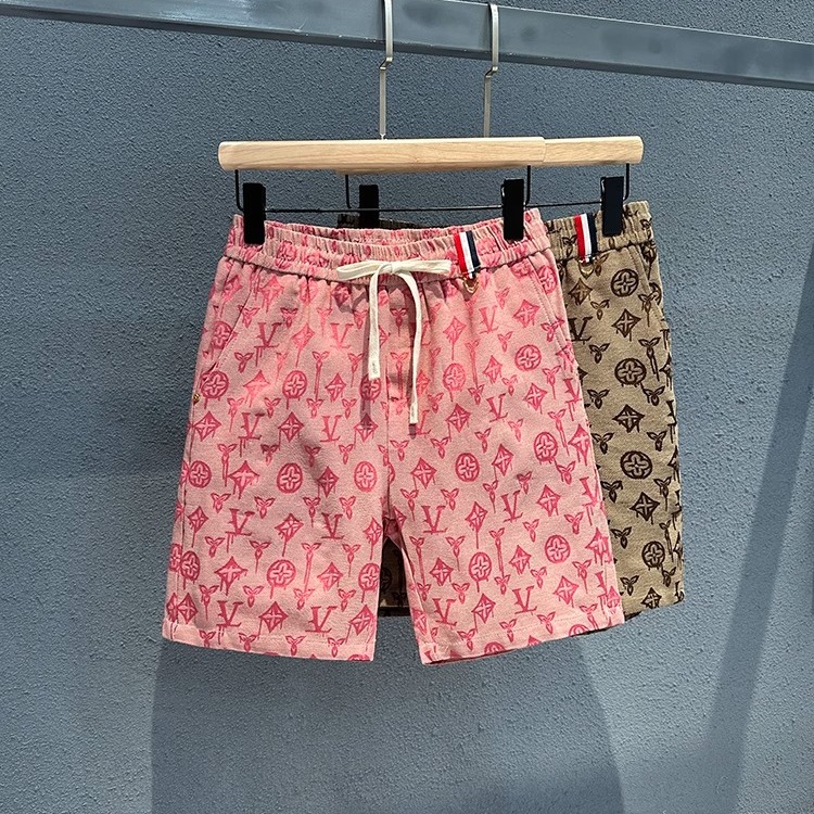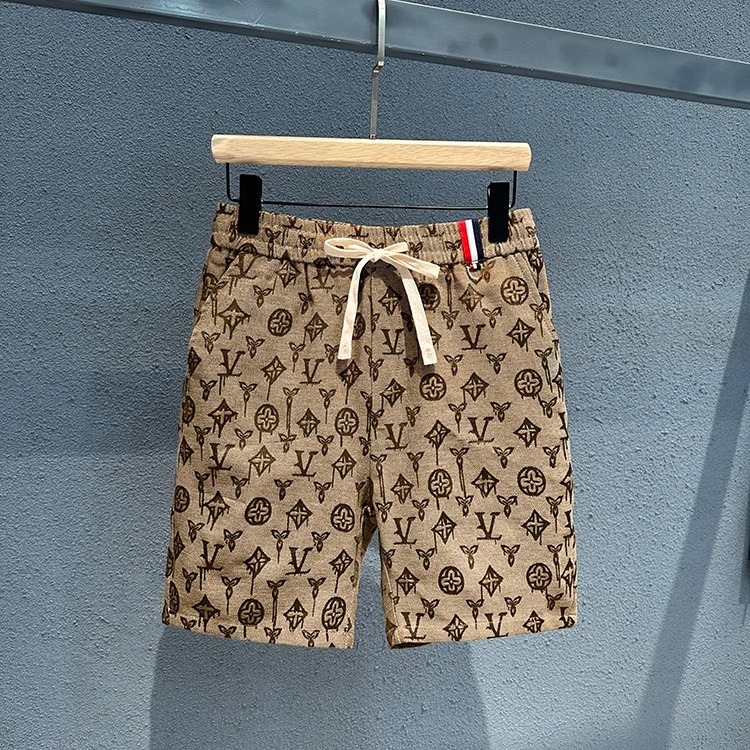 夏季新款潮男痞帅抽绳短裤牛仔布修身五分裤欧货满印透气薄款个性