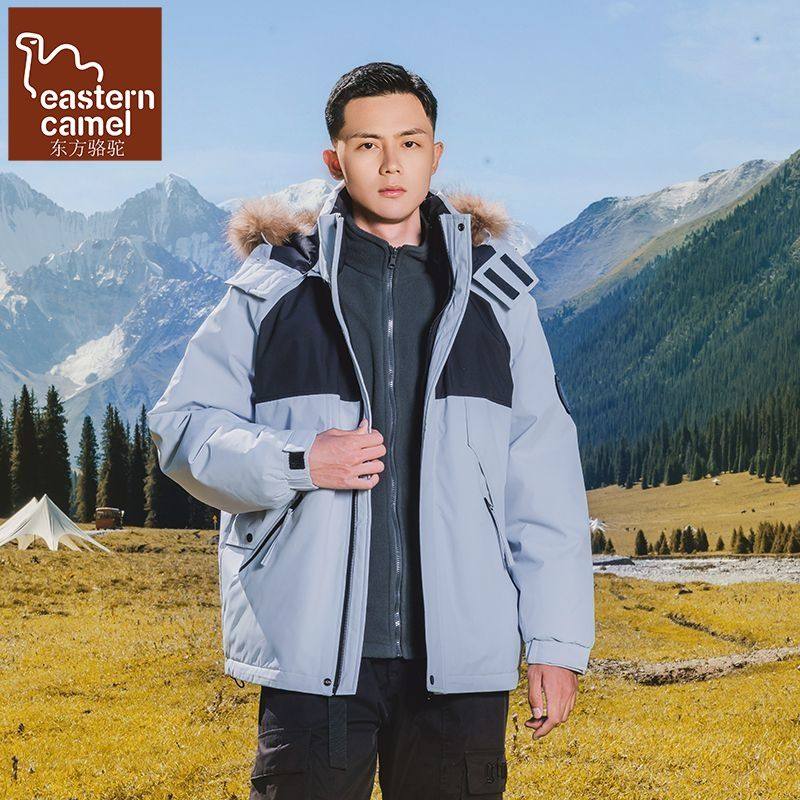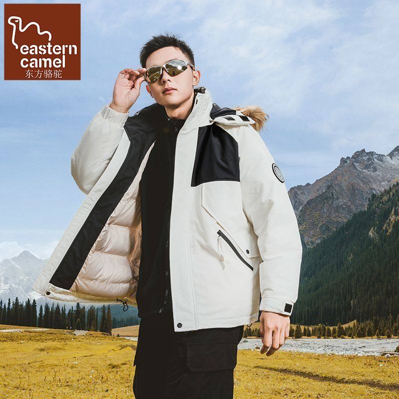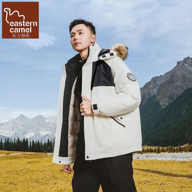 90白鸭绒潮牌宽松加厚可拆卸连帽羽绒服男廓形户外防水大毛领外套