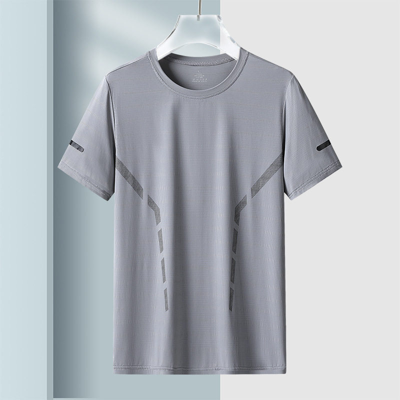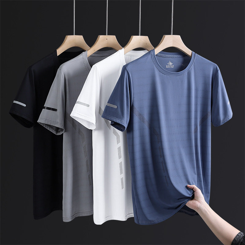 冰丝短袖t恤男装圆领衣服潮流夏季冰感白色半袖大码打底衫宽松