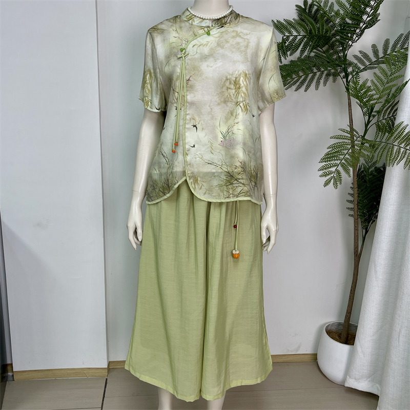 新中式妈妈夏装两件套2025新款中年女装上衣短袖小衫裤裙国风套装