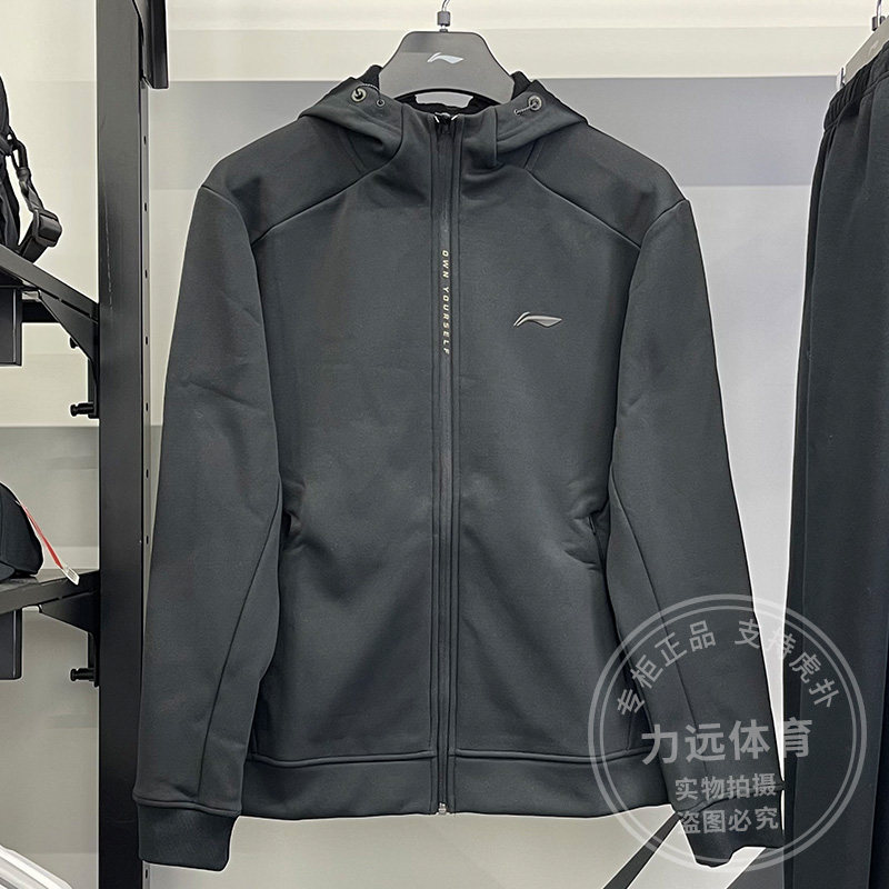 李宁男子卫衣卫裤2024冬季新款健身反光加绒保暖运动套装AWDU577