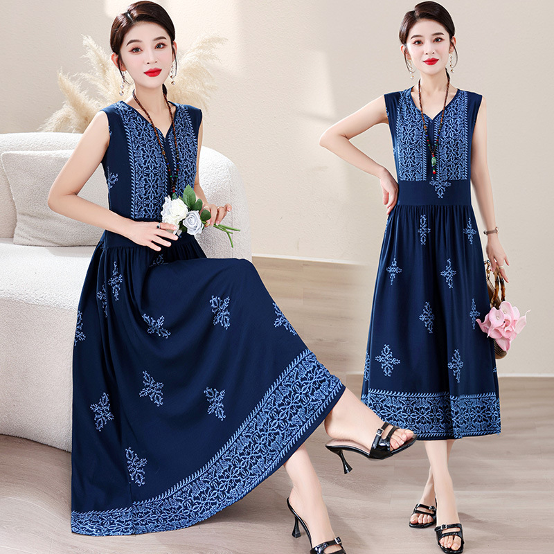 新款民族风棉绸连衣裙旅游度假裙