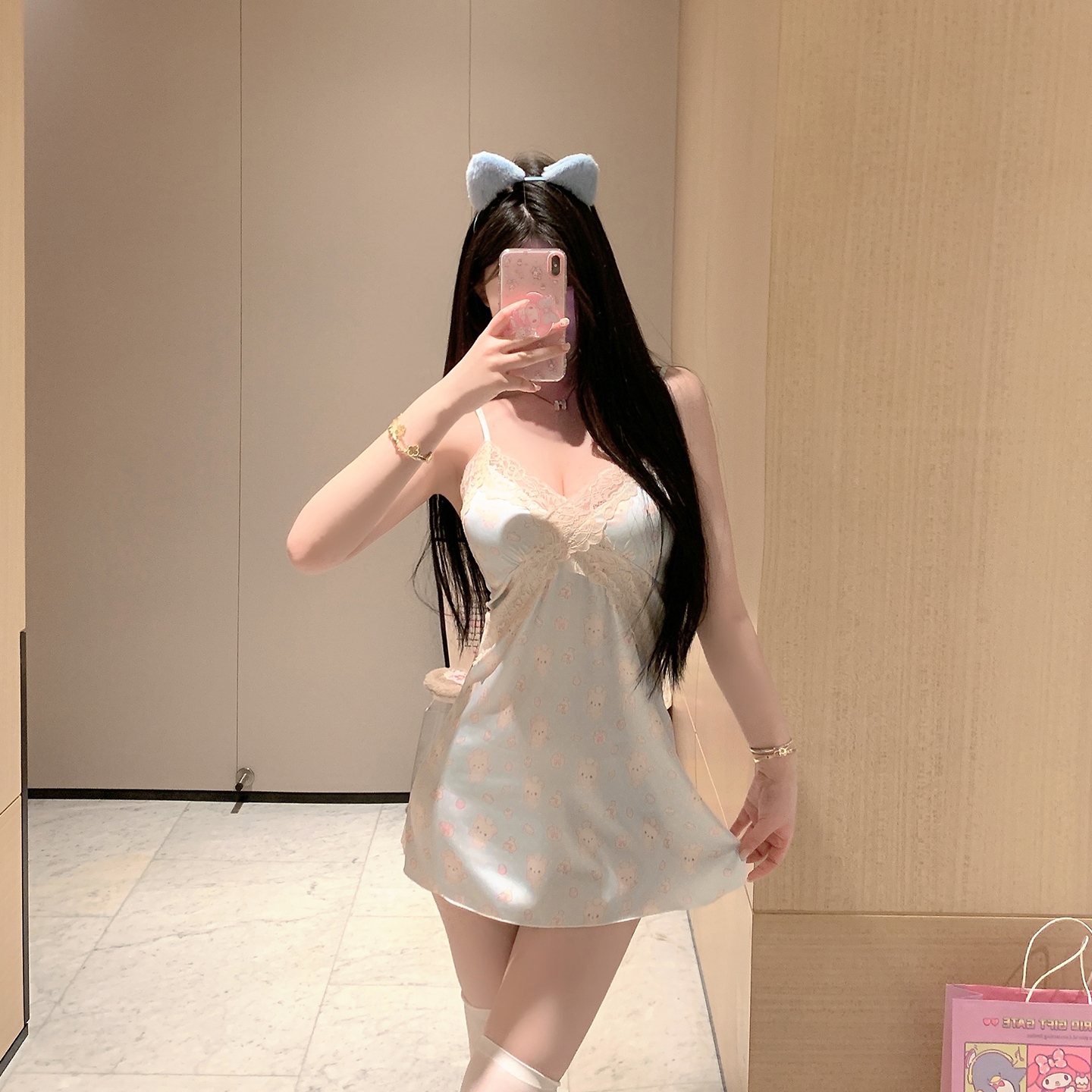 捞捞酱「奶蓝轻松熊」原创性感冰丝吊带睡衣女2025夏纯欲风家居服
