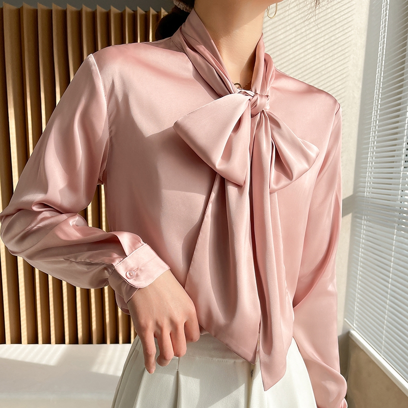 重磅缎面衬衫女职业女装上衣白色长袖精致面试衬衣