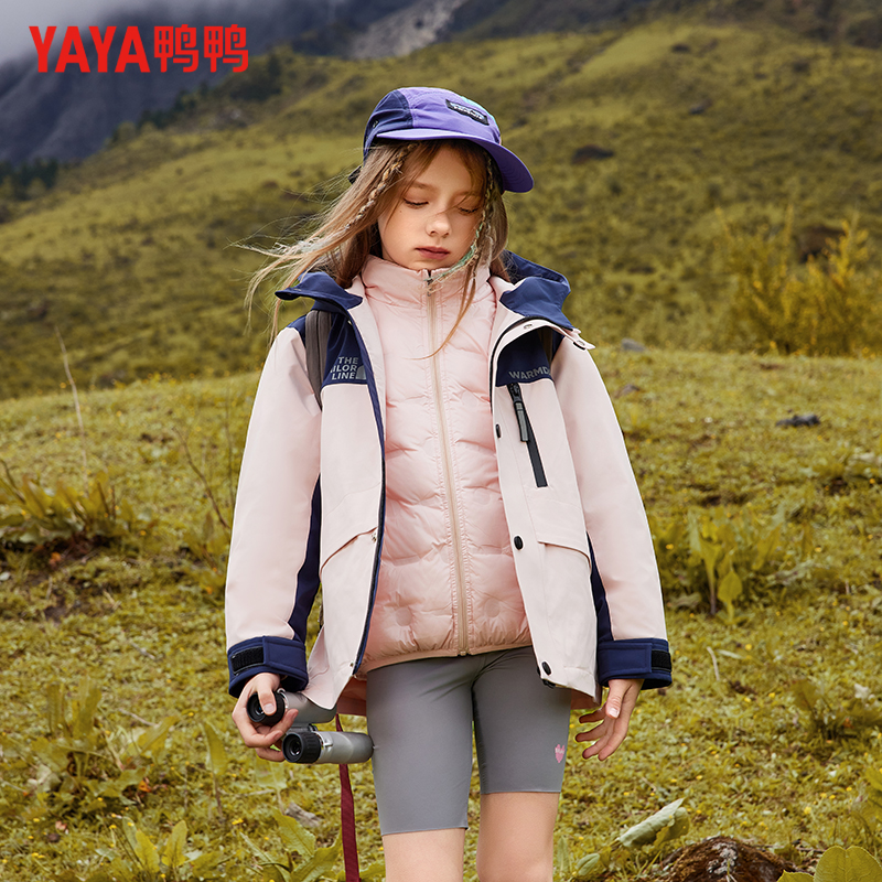鸭鸭儿童羽绒服男童女童中长款加厚连帽外套中大童冬季新款面包服
