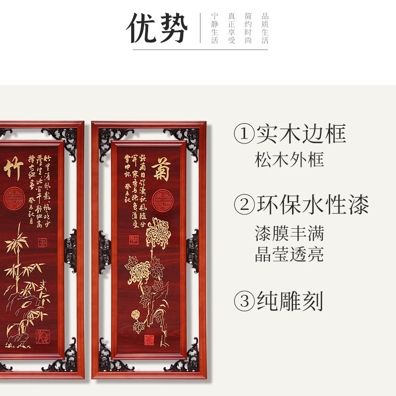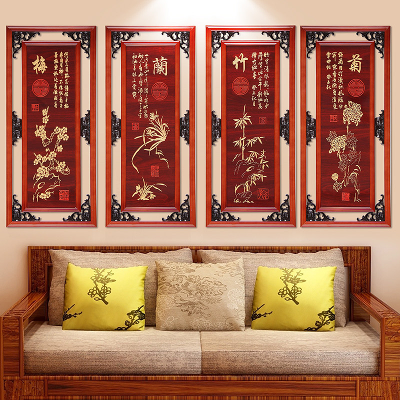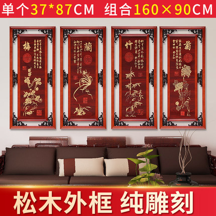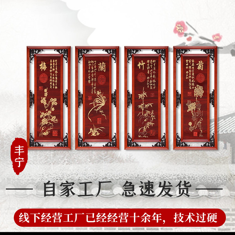 梅兰竹菊春夏秋冬雕刻牌匾客厅装饰画字画四件套沙发东阳木雕镂空