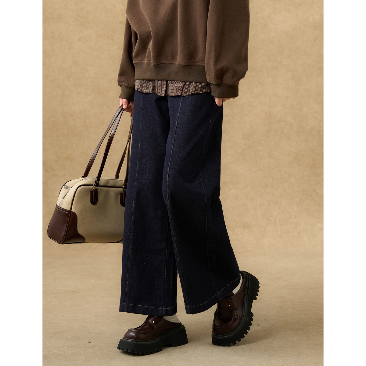 西町村屋极简风阔腿裤女装2025秋季新款通勤复古牛仔裤XHAC10004