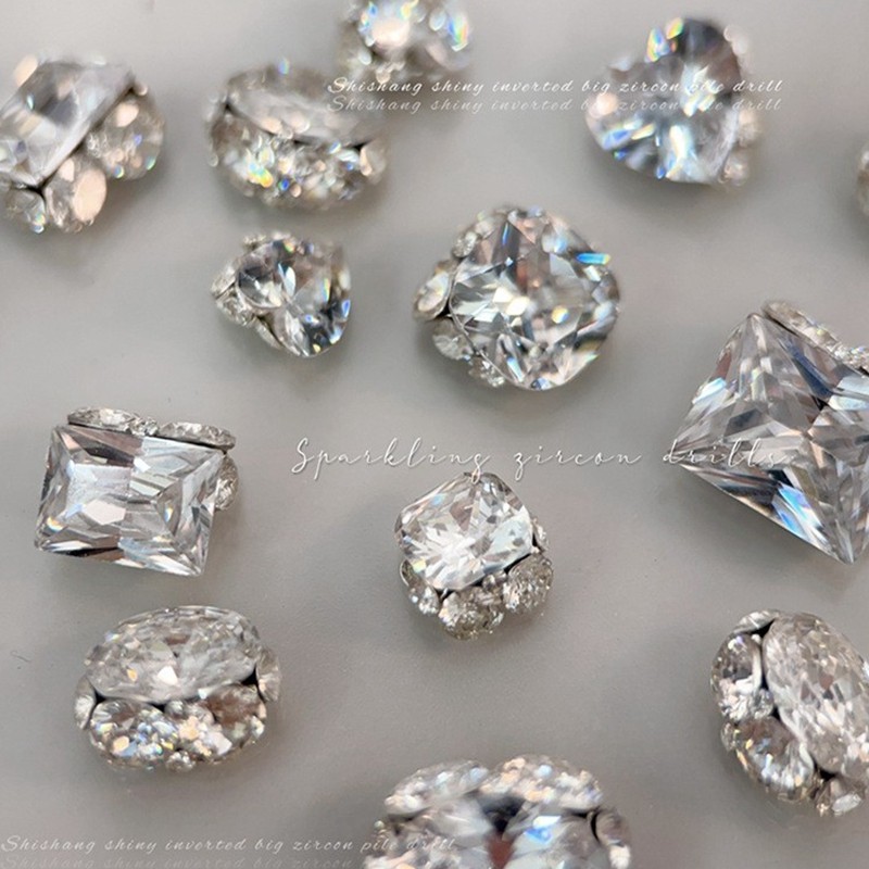 美甲饰品肥方白色锆石堆钻成品手工钻球爆闪满钻直角鸽子蛋装饰品